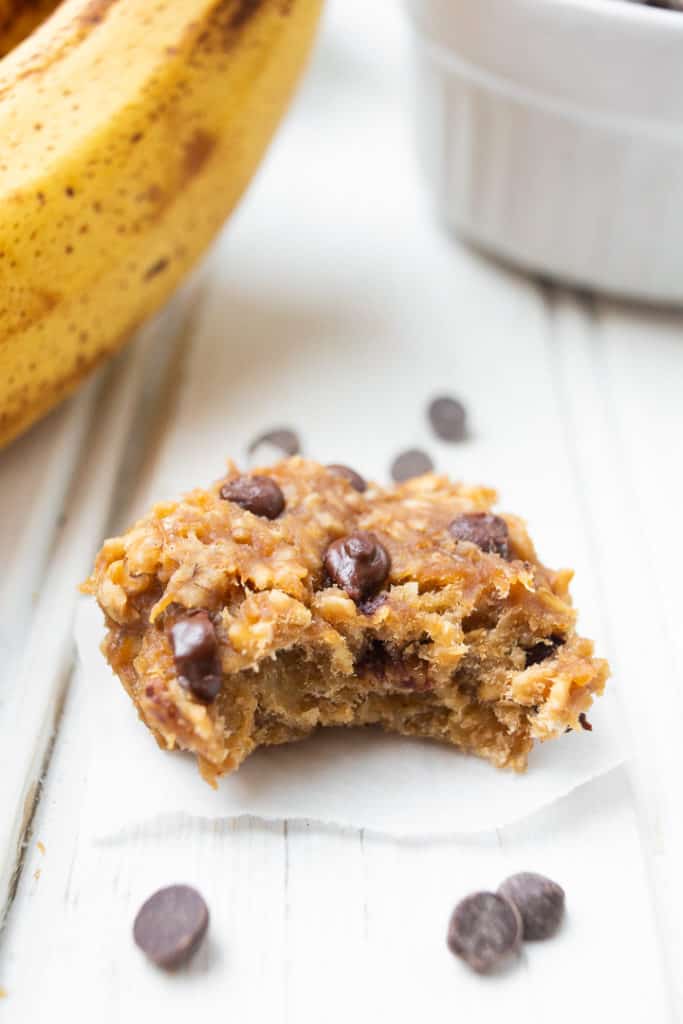 These are easy and delicious! Only had 1 tbsp of chocolate chips, so just used that and 1 tbsp of shredded coconut and they still turned out great. I think having overripe bananas for recipes like this is really key to get the best texture and flavour. Would